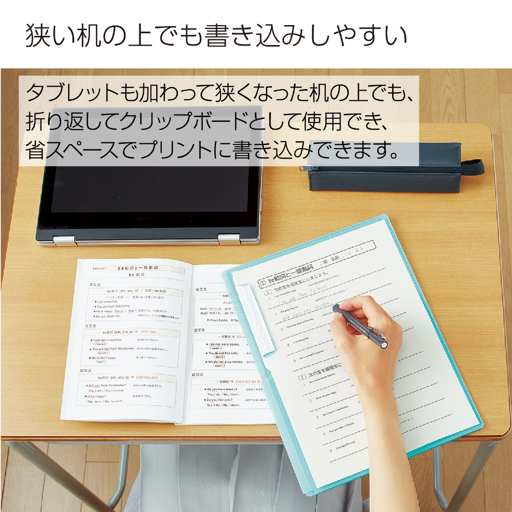 ●プリントを分類できる2つのポケットと、書き込みしたいプリントをとじておけるクリップによって、プリントへの書き込みと保管が1冊でできる。