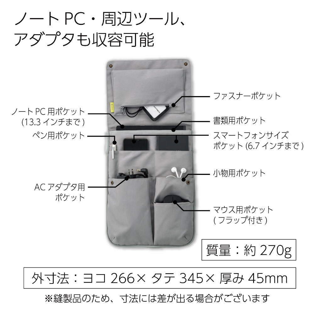 | 商品名 | ノートパソコン対応 [13.3インチ] バッグインバッグ タテ型 BIZRACK(ビズラック) カハ-BRB135M アッシュグレイ 【864】 |