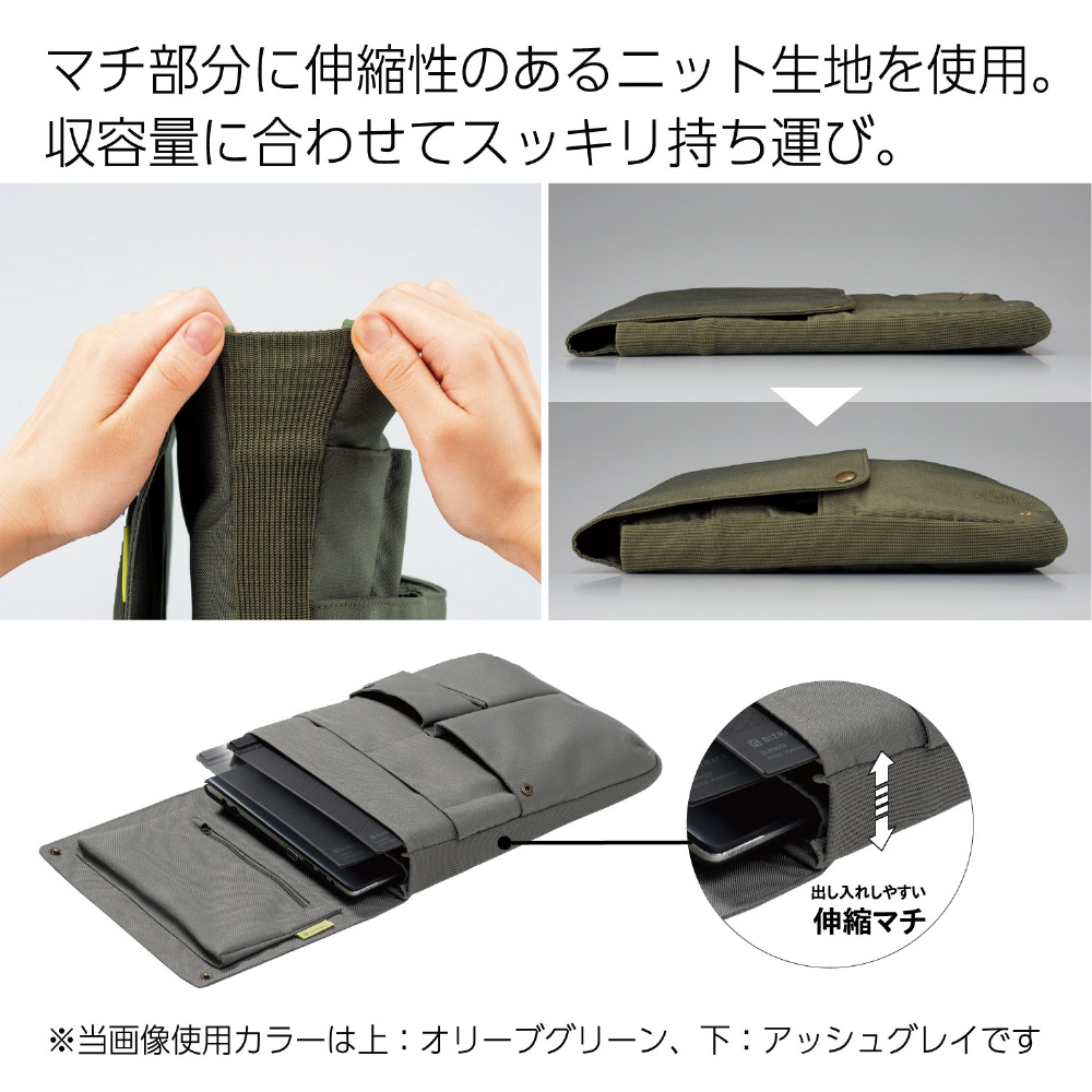伸縮素材のマチ生地でたくさん入るのにスッキリとみえる!ノートPCを拠点外に持ち運ぶ方へのバッグインバッグ