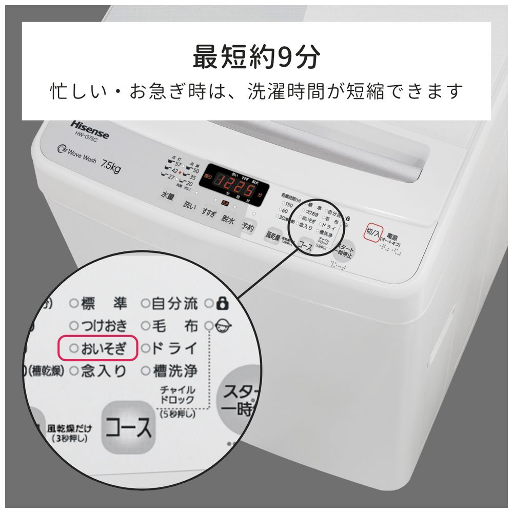 全自動洗濯機 ホワイト HW-G75C [洗濯7.5kg /簡易乾燥(送風機能) /上開き]