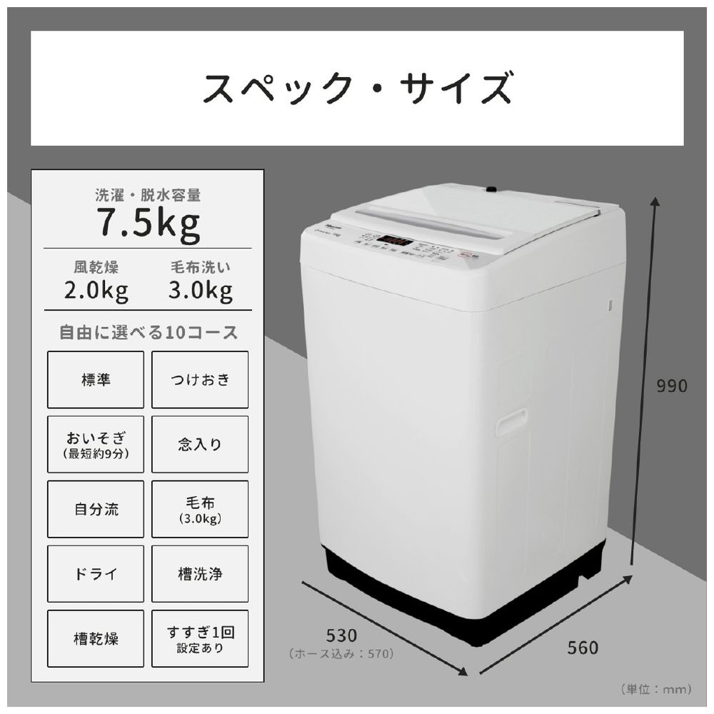 | 商品名 | 全自動洗濯機 ホワイト HW-G75C [洗濯7.5kg /簡易乾燥(送風機能) /上開き] |