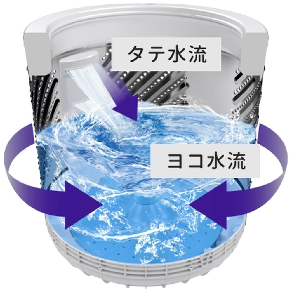 ・「ヨコ水流」に「タテ水流」を加えることで、洗濯物を踊るように動かして頑固な汚れを落とします。