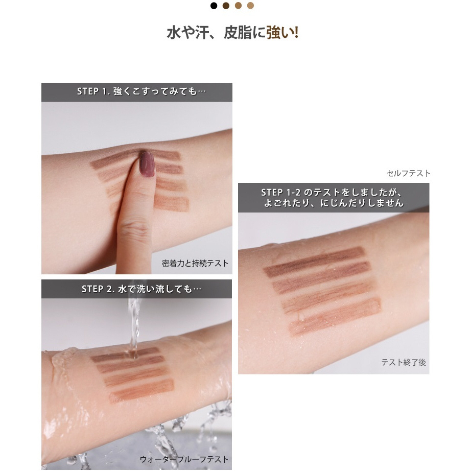 楕円型ペンシルタイプ ペンシルの折れや崩れをなくすとともに、肌への刺激を最大限に減らした楕円型ペンシルです。 2)ウォータープルーフで長時間持続 水や汗に強くにじみを防ぎ、自然な眉を長時間キープします。