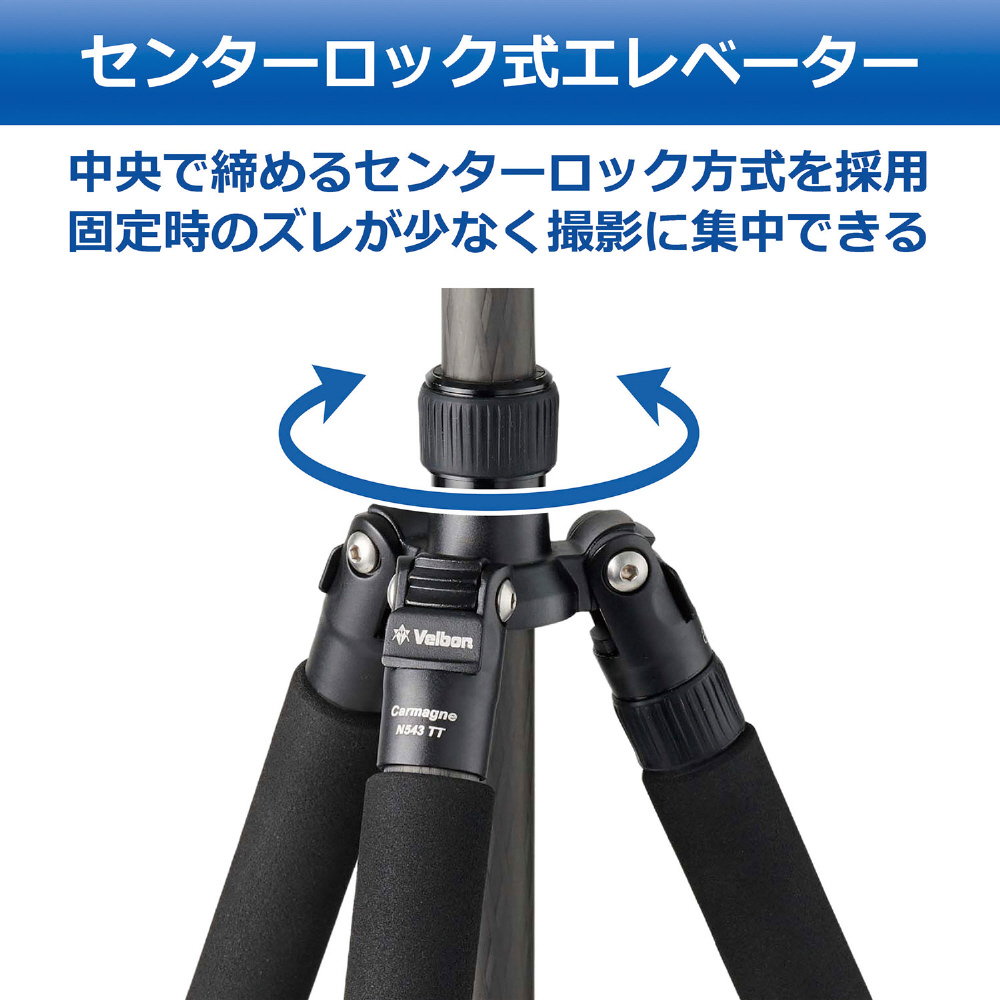 エレベーターの伸縮固定は中央で締めるセンターロック方式を採用。エレベーターが一方に押されることなく固定されるので構図のズレが少なく、撮影に集中できます。