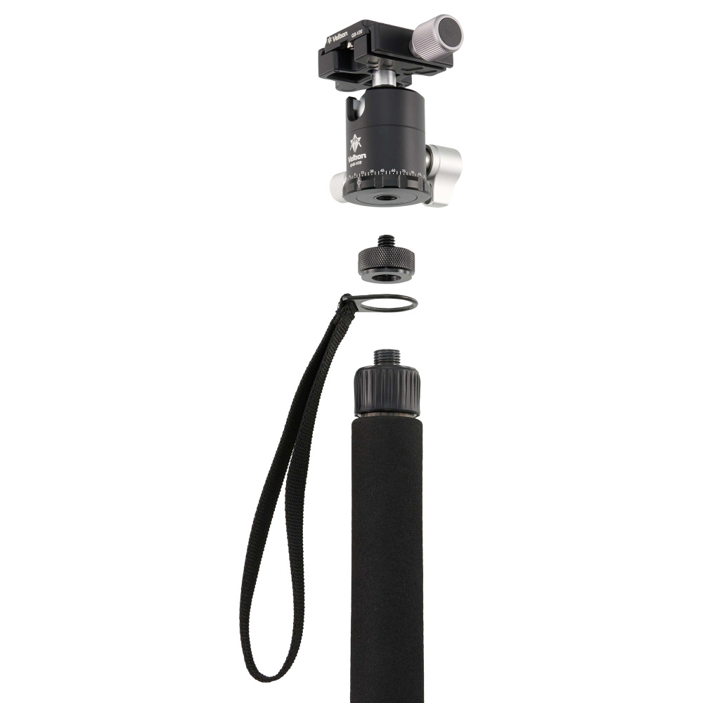 雲台にはワンアクションで様々な構図を楽しめる自由雲台を装備。クイックシューには他の撮影機材に広く採用されているアルカスイス互換シューを採用しています。※全ての互換性を保証するものではありません。