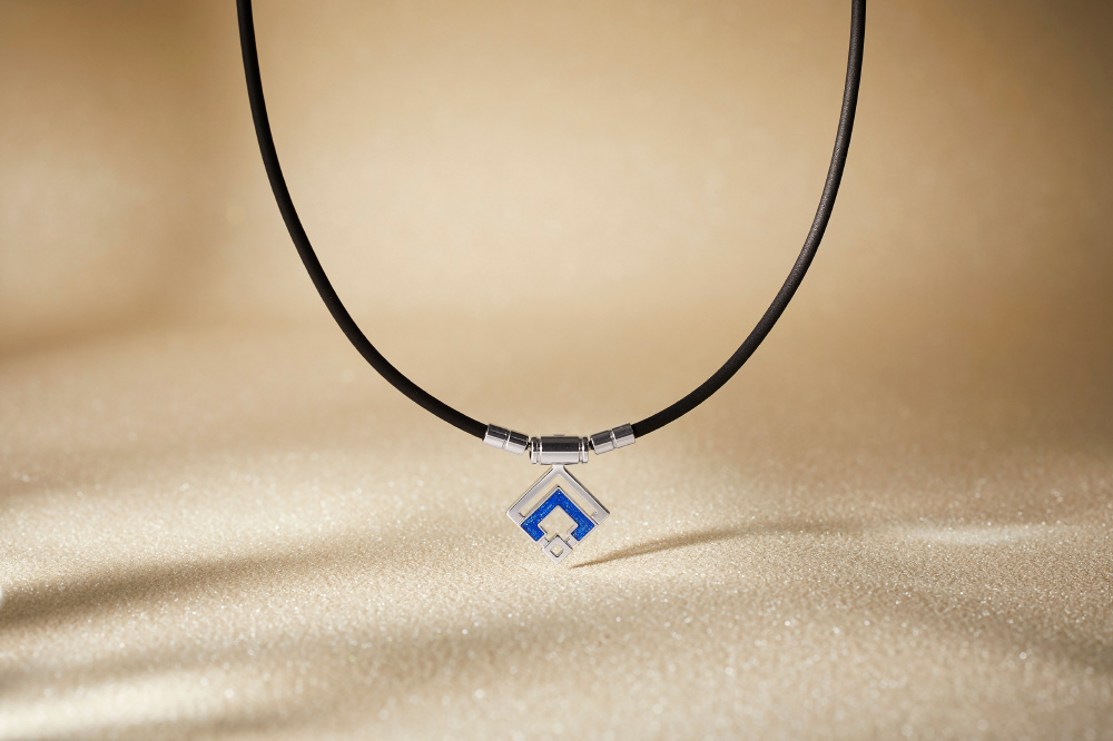 鏡面加工の輝きと、樹脂を用いた「研ぎ出し七宝」の技術で美しいコントラストを演出しています。