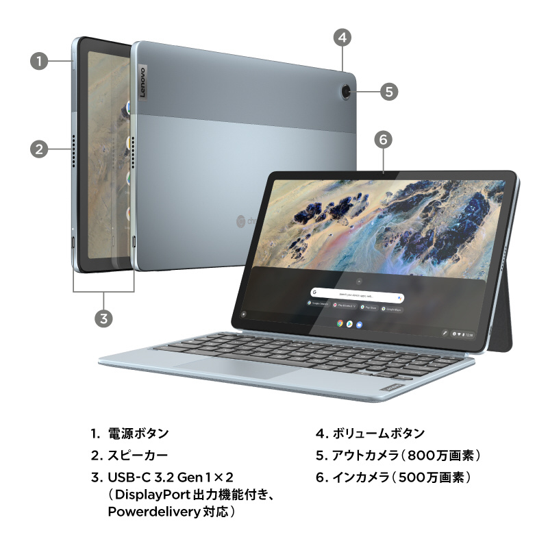 ノートパソコン IdeaPad Duet370 Chromebook ミスティブルー 82T6000RJP [10.8型 /Chrome OS /Snapdragon /メモリ:4GB /eMMC:128GB /2022年7月モデル] 【sof001】