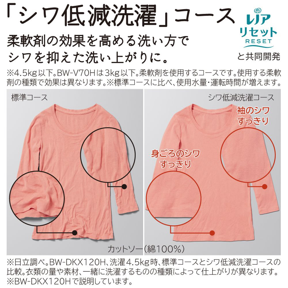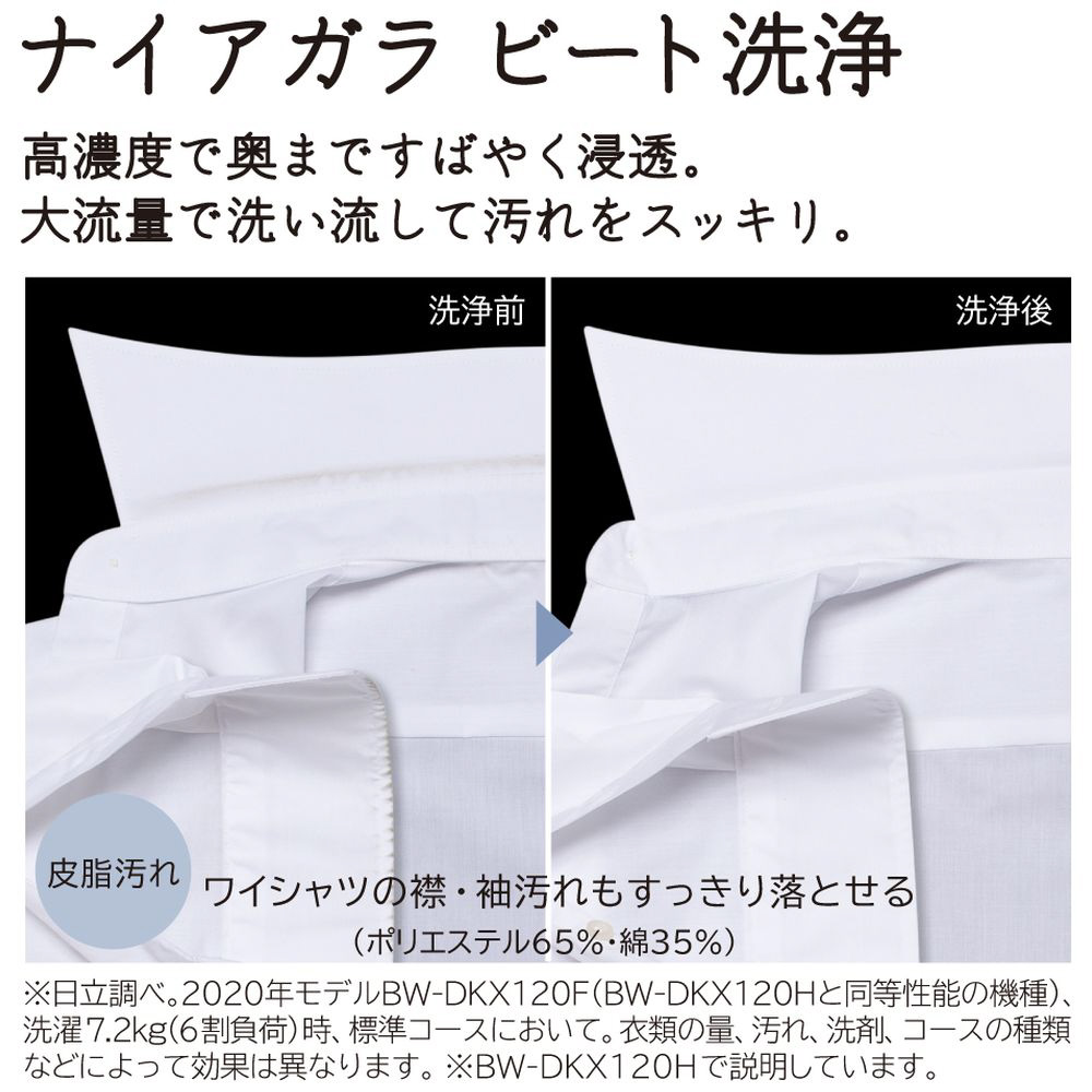 *日立調べ。2020年モデルBW-DKX120F(BW-DKX120Hと同等性能の機種)、洗濯7.2kg(6割負荷)時、標準コースにおいて。