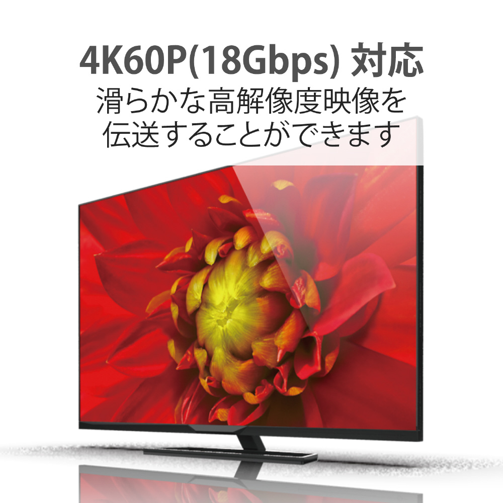 高速映像通信ラインに光ファイバーを採用しており、長いケーブル長でも外来ノイズの影響を受けにくい、ハイブリッド構造の4K60P(18Gbps)対応HDMIケーブルです。コンセントがない場所でも利用可能な外部電源不要タイプで、取り回しがしやすい約4.8mm径のケーブルを採用しています。テレビとサウンドバーを接続可能なARCにも対応しており、家庭内シアターシステム構築にも最適です。