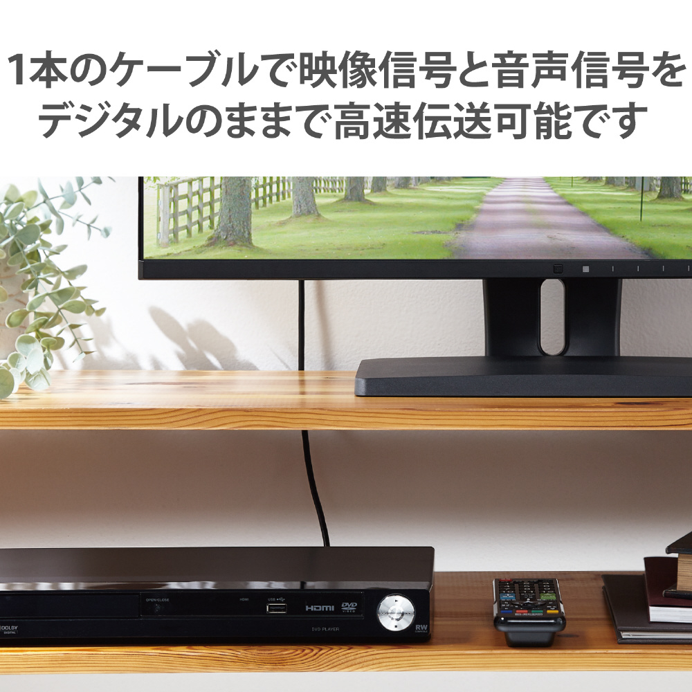 高速映像通信ラインに光ファイバーを採用しており、長いケーブル長でも外来ノイズの影響を受けにくい、ハイブリッド構造の4K60P(18Gbps)対応HDMIケーブルです。コンセントがない場所でも利用可能な外部電源不要タイプで、取り回しがしやすい約4.8mm径のケーブルを採用しています。テレビとサウンドバーを接続可能なARCにも対応しており、家庭内シアターシステム構築にも最適です。