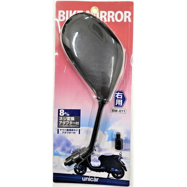 バイクミラー 右 (8mm→8mm逆ネジアダプター付属) ブラック BM-011