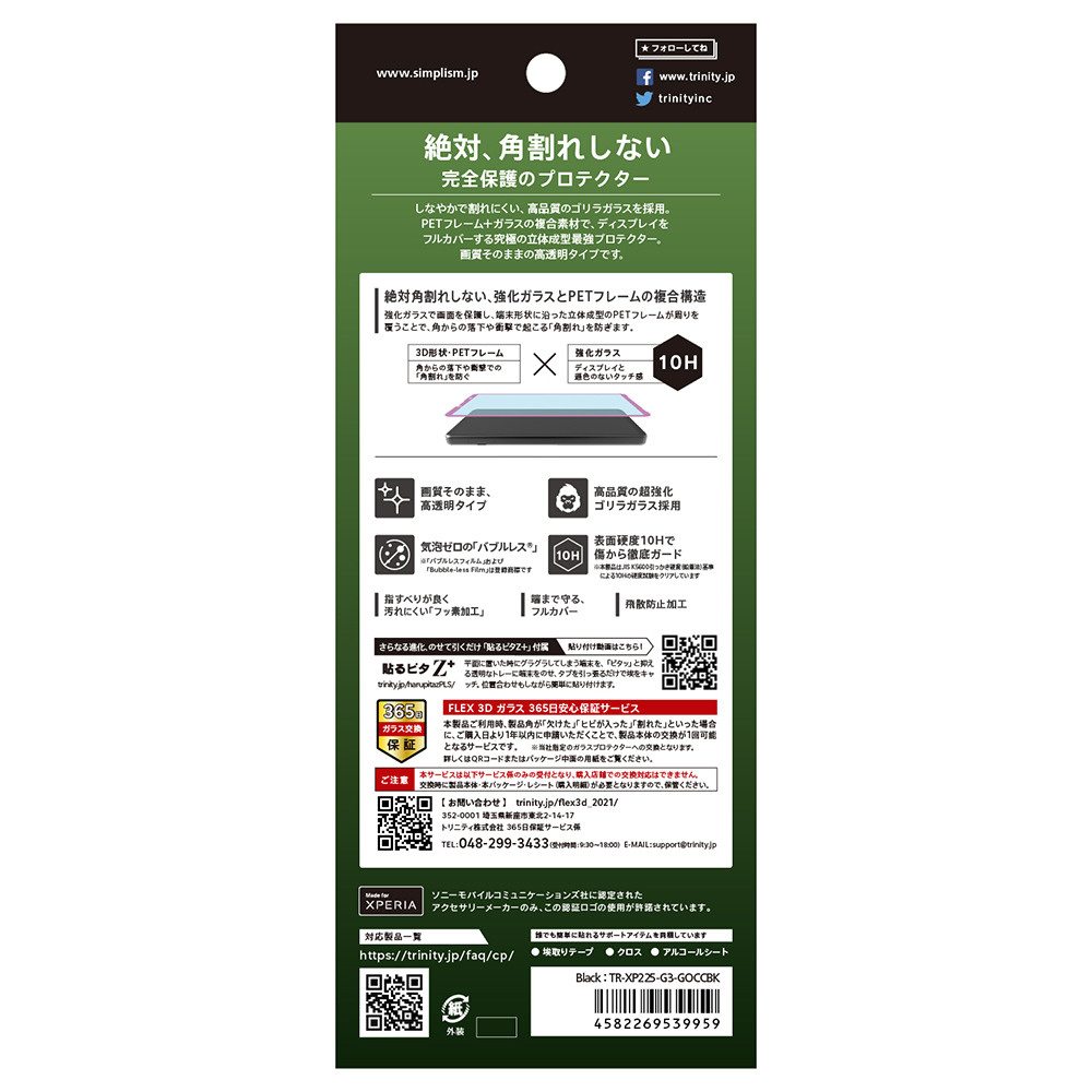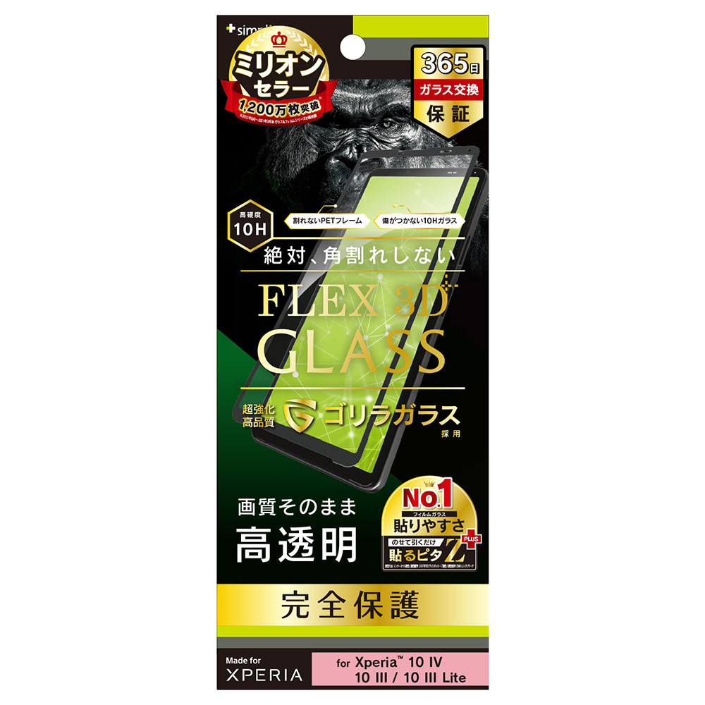 | 商品名 | Xperia 10 IV / 10 III / 10 III Lite [FLEX 3D] ゴリラガラス 高透明 複合フレームガラス ブラック 光沢 TR-XP225-G3-GOCCBK |