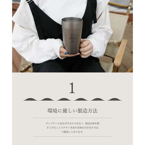 魔法瓶と同じ構造で作られた二重構造のチタン製タンブラーです。