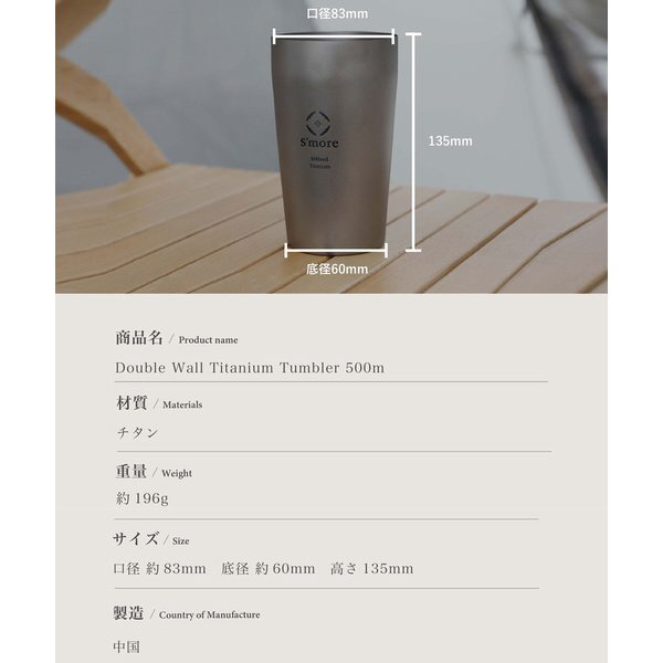 Titanium Tumbler Double500 チタンタンブラー(500mL) SMOrsUT001TD1a500slv