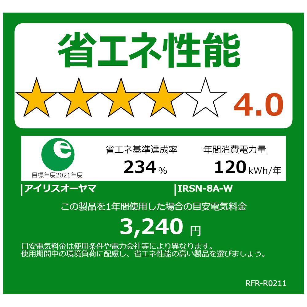 | 年間消費電力量 | 120 kWh/年 |