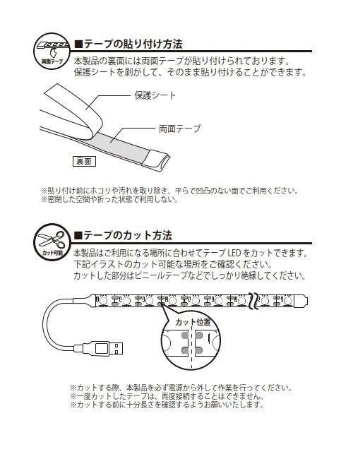 | 仕様2 | 色温度:約3200K 電源:USB 5V/1A以上 |