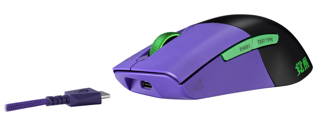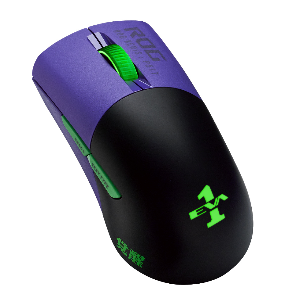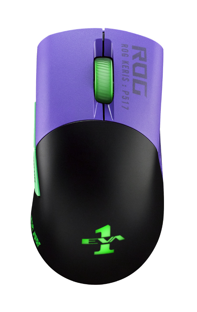 重量わずか79gで、初号機EVA-01の印象的なテーマカラーである緑と紫を身に纏っています。16000dpiのROGセンサーとROGプッシュフィットスイッチソケットを搭載することで、ユーザーは極めて高い精度で狙いを定め、トリガーに必要な力をカスタマイズして攻撃することができます。