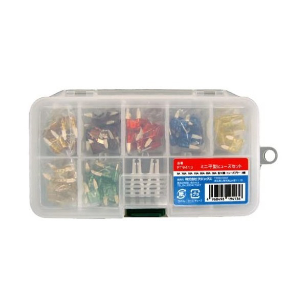 | 商品名 | ミニ平型ヒューズセット (5A、7.5A、10A、15A、20A、25A、30A各10個) PT9413 |