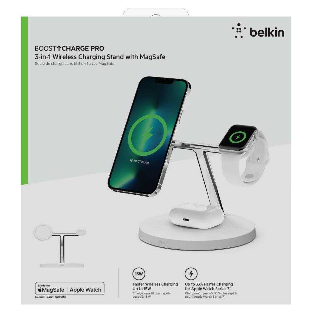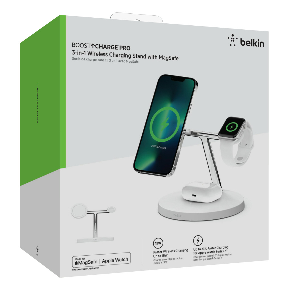 Apple Watch急速充電対応 MagSafe 3-in-1 ワイヤレス充電スタンド(電源アダプタ付) ホワイト WIZ017DQWH [15W]