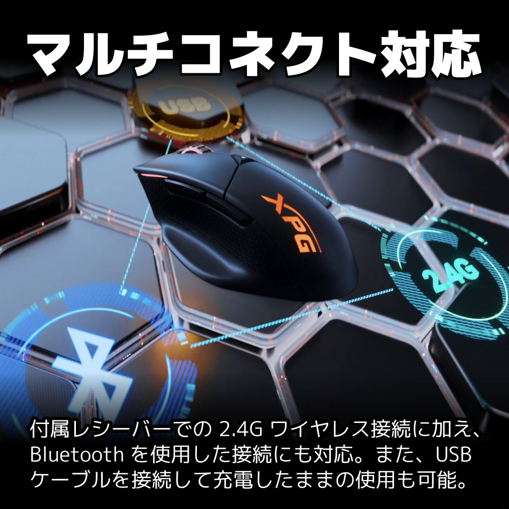 ゲーミングマウス XPG ALPHA WIRELESS ブラック ALPHAWL-BKCWW [光学式 /有線/無線(ワイヤレス) /6ボタン /Bluetooth・USB] 【864】