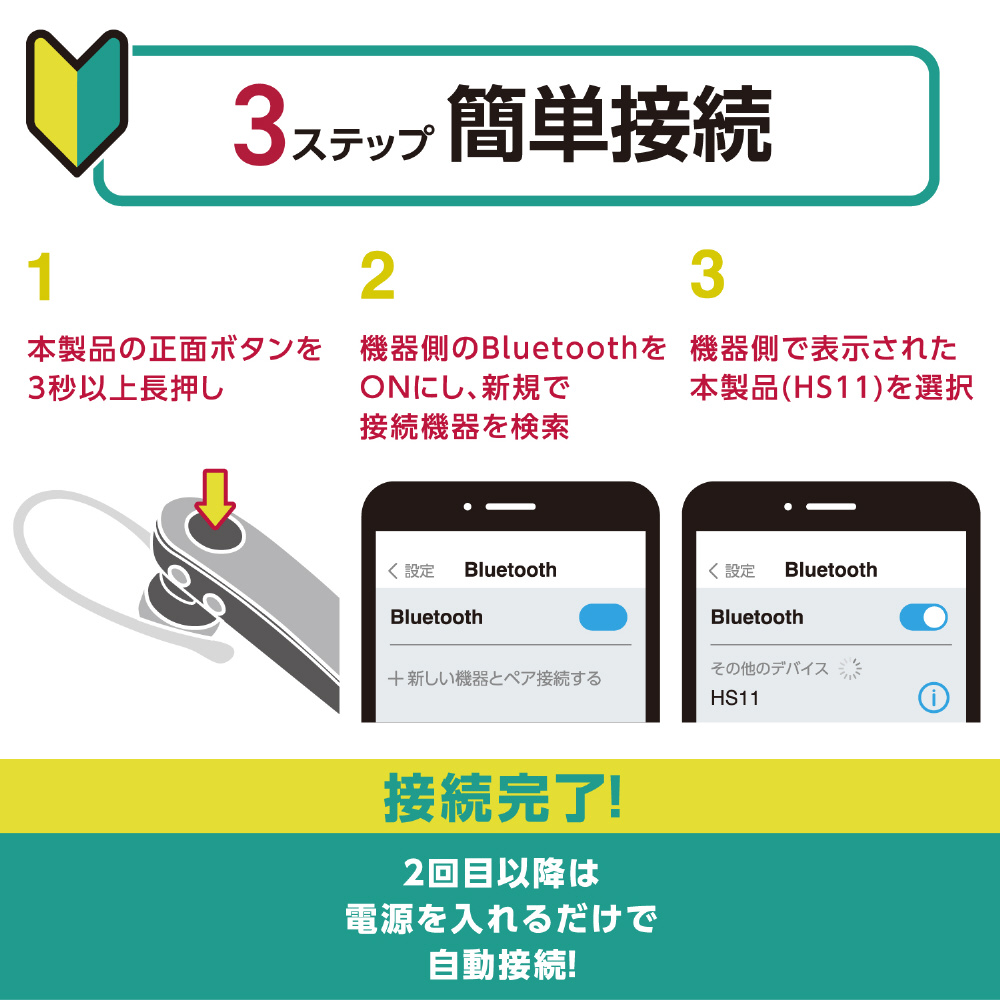 ■3ステップで簡単に接続可能なBluetoothハンズフリーヘッドセット