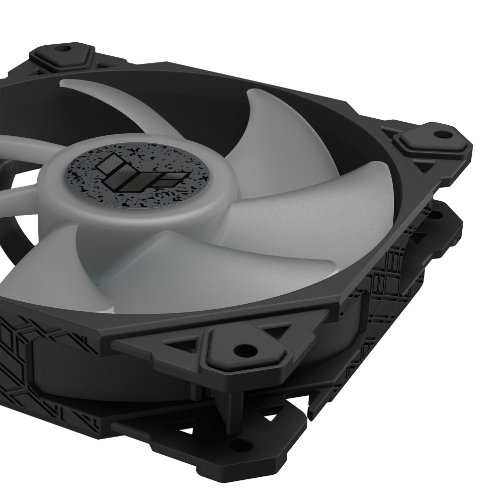 優れた性能と耐久性を備え、虹色に輝くTUF Gaming TF120 ARGBケースファン