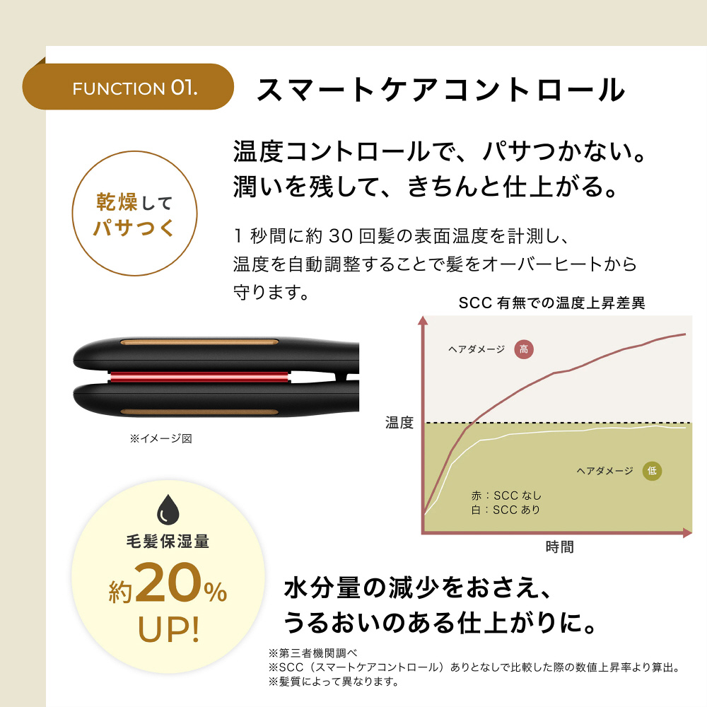 スマートケアコントロールで髪をオーバーヒートから守り、うるおいを保つ。