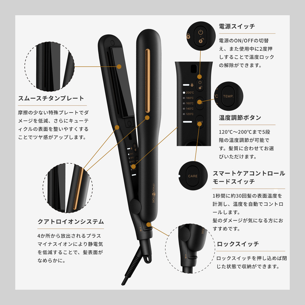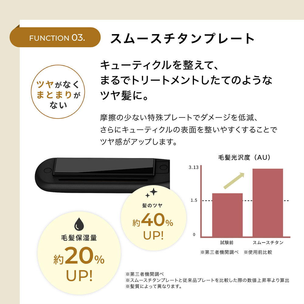 スムースチタンプレート搭載で、髪にツヤをあたえる。