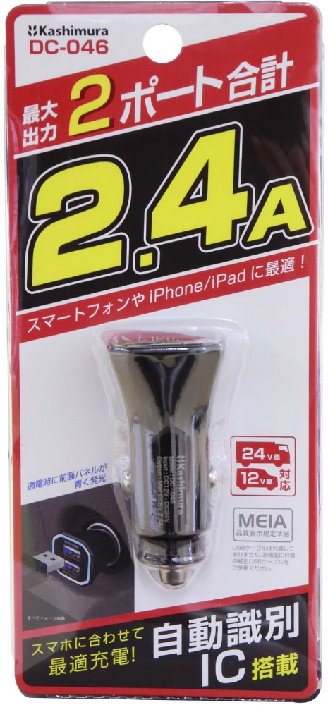| 商品名 | DC充電器 USB-A/2ポート 2.4A DC-046 |