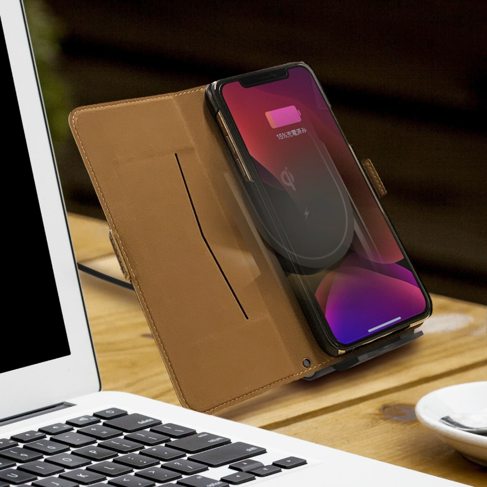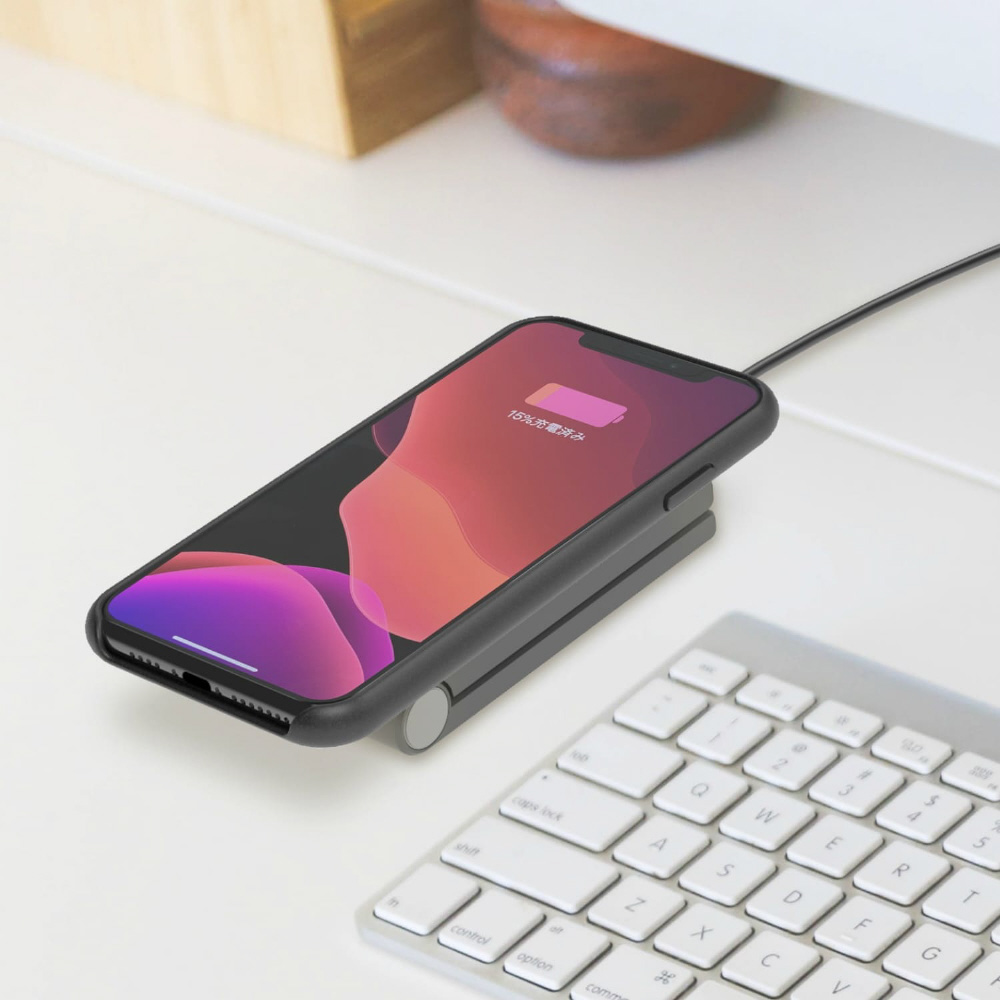 立て掛け、平置きの2通りで充電できるワイヤレス充電器