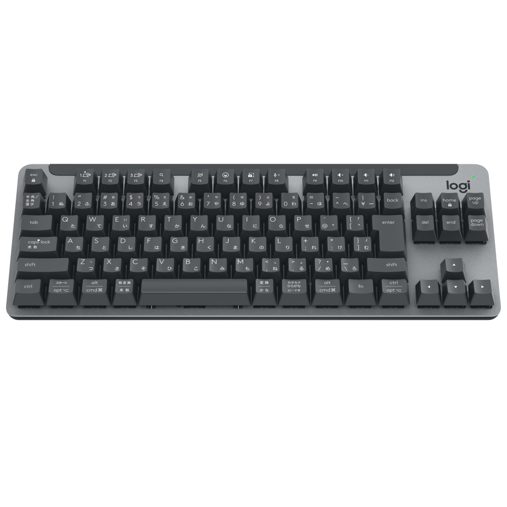 狭いデスクスペースにフィットするようにデザイン された、ワイヤレス メカニカル テンキーレス キーボード (日本語配列)