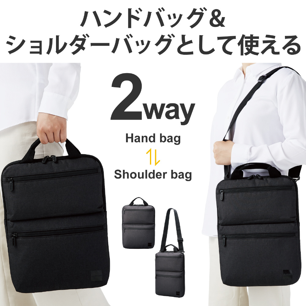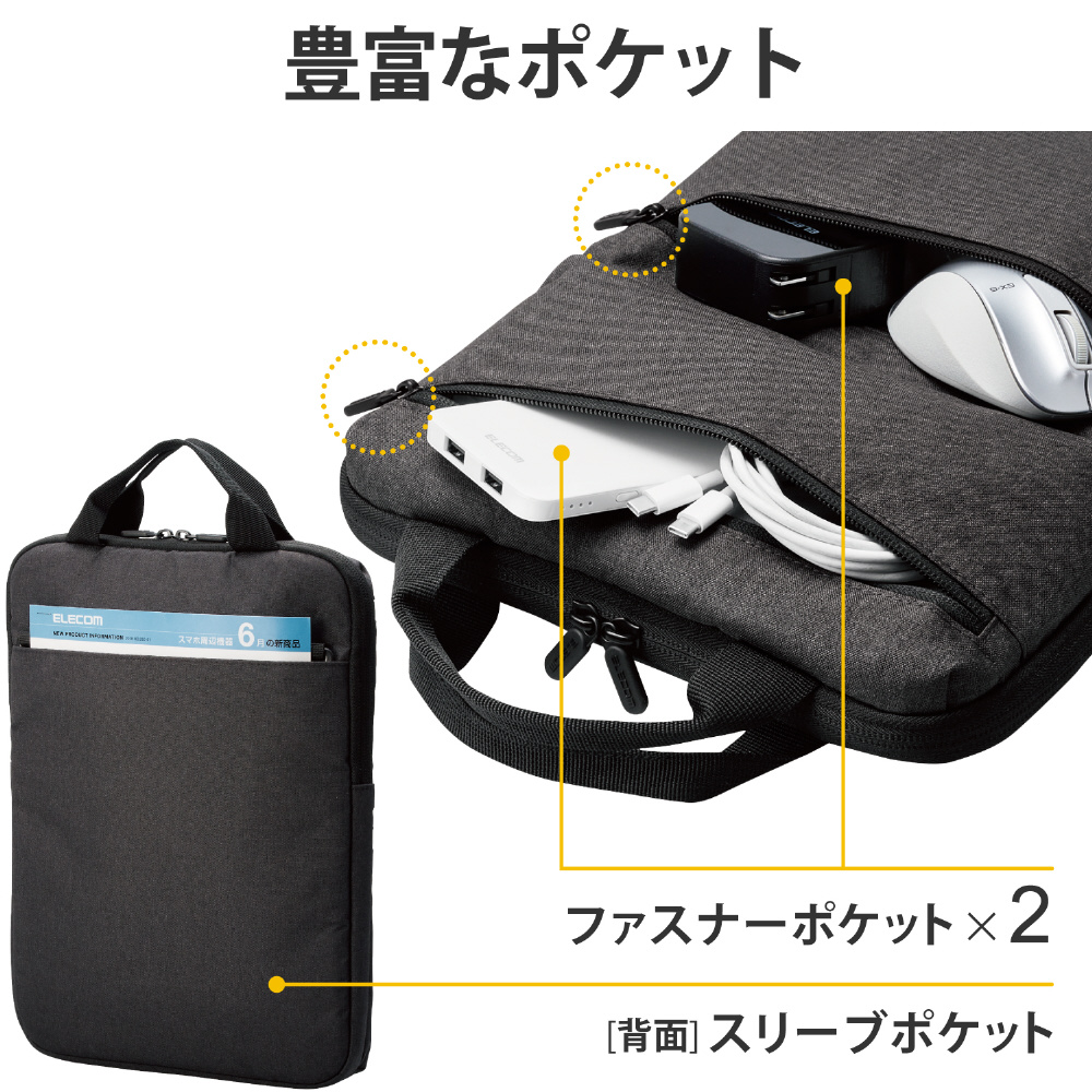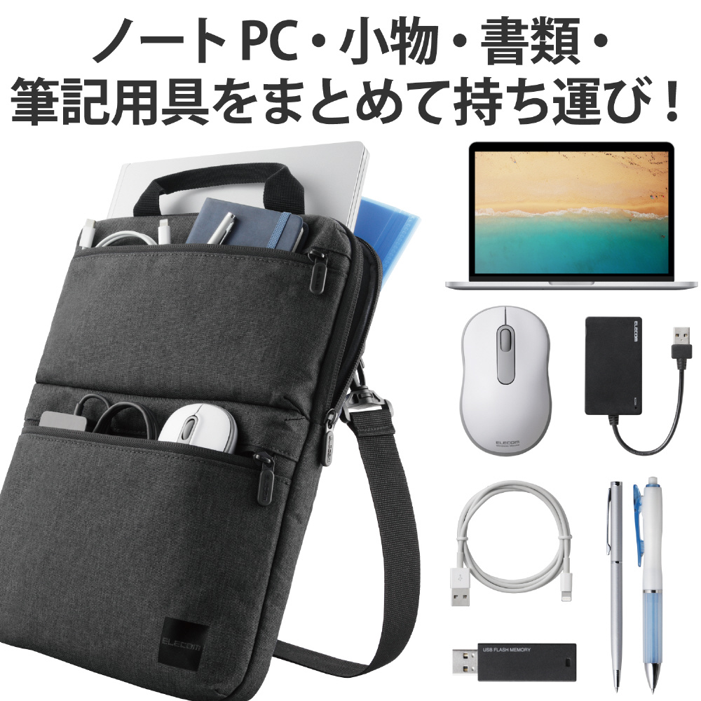 ノートパソコン、周辺機器、筆記用具、書類をまとめて持ち運べる!十分な収納力を備えた、14.0インチ対応のショルダーベルト付き縦型インナーバッグ。