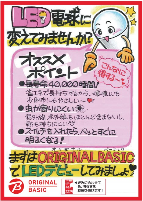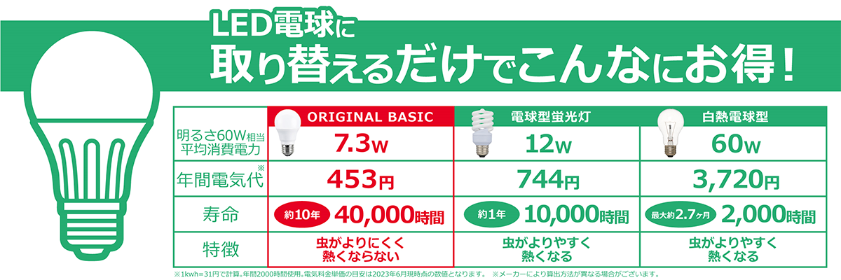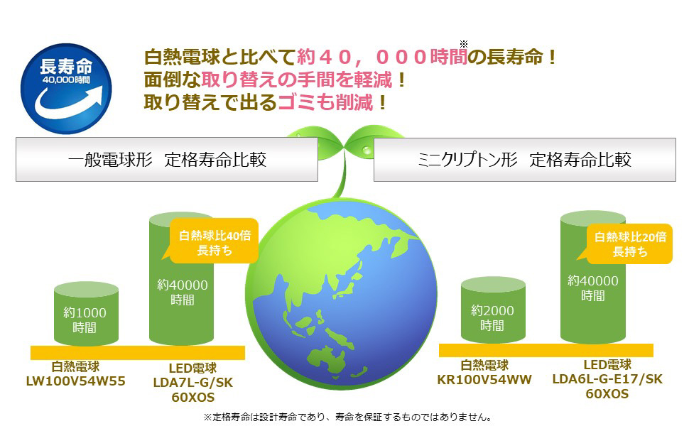 長寿命40,000R>1回の交換で40,000時間の長寿命です。手間の掛かる取替え回数も減り、ゴミの削減にもなります。