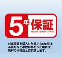 安心してお使いいただける様5年保証とさせていただいております。保証期間はお買い上げされた日より5年間となります。