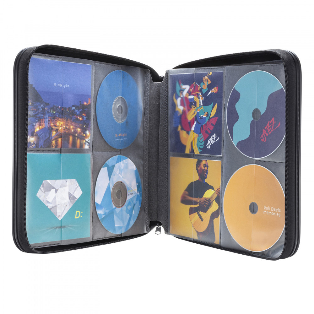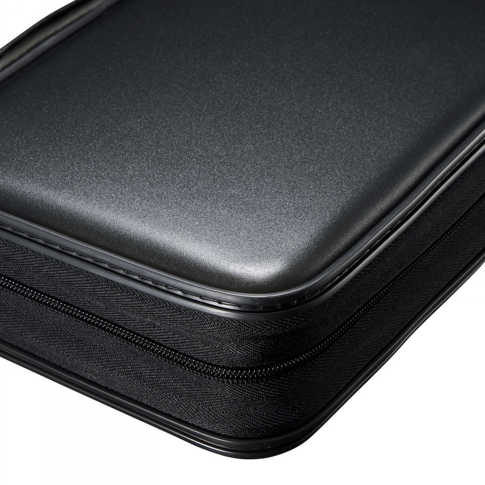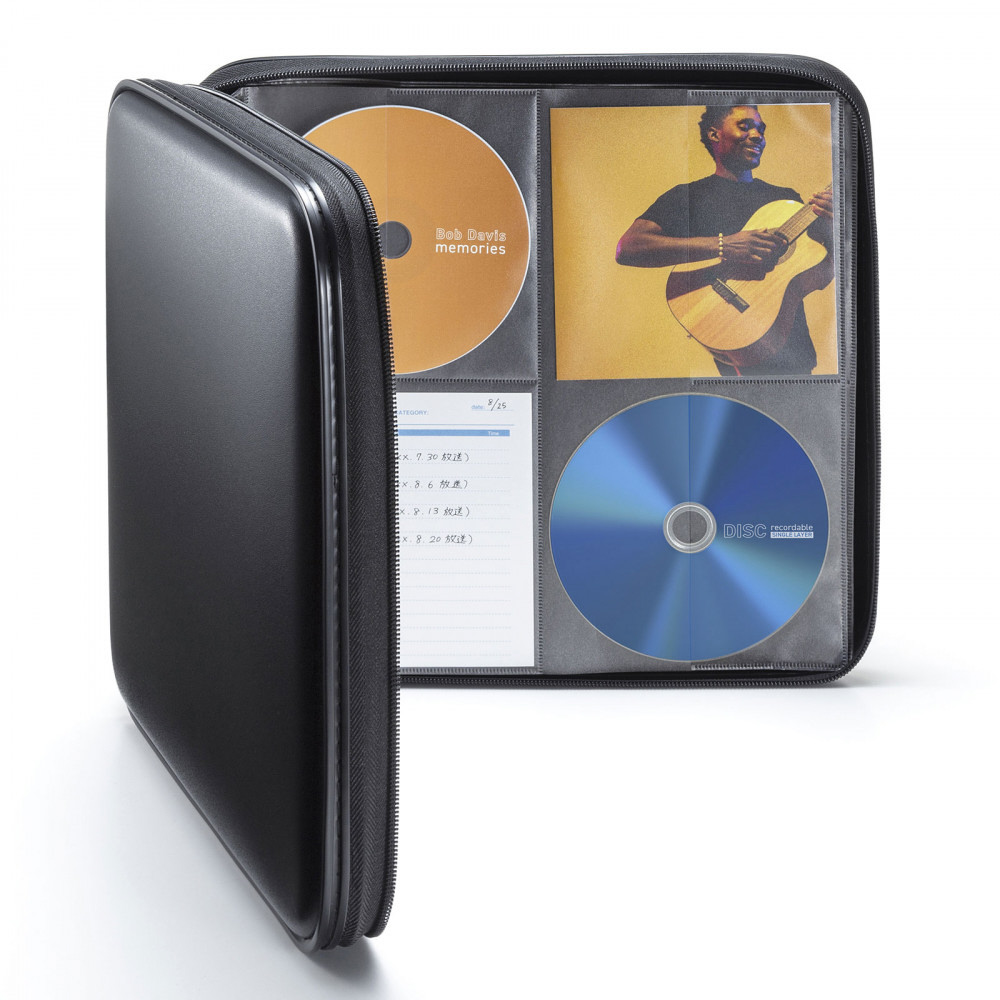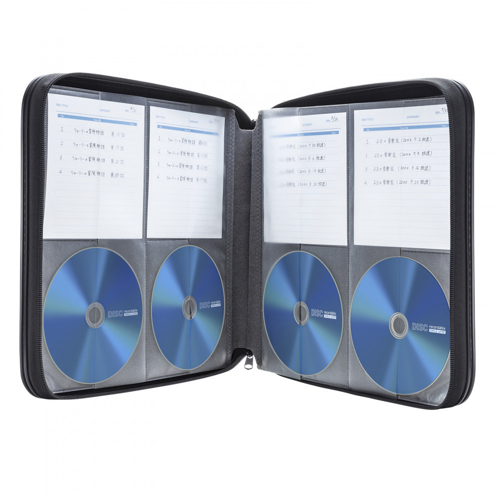 ディスクと一緒にジャケットやインデックスカードも収納できるポケット構造。ディスクの管理に最適なファスナー付きセミハードケース。