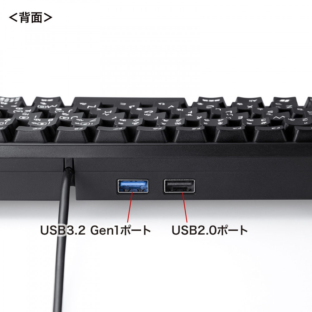 USB3.2ポートとUSB2.0ポートのハブを内蔵したコンパクトキーボード。