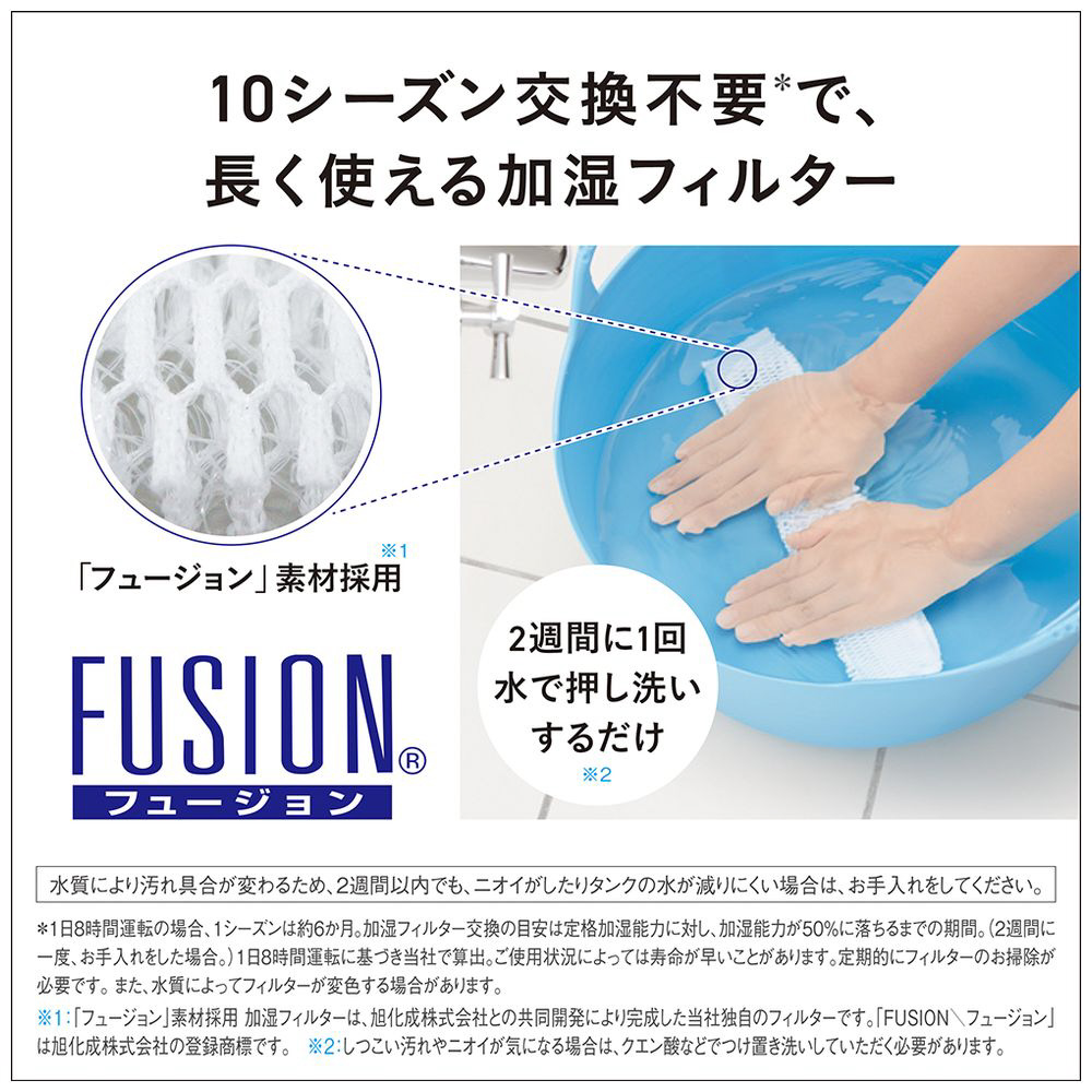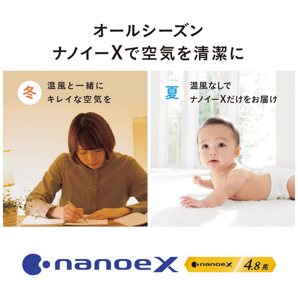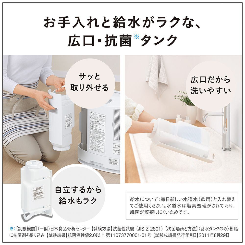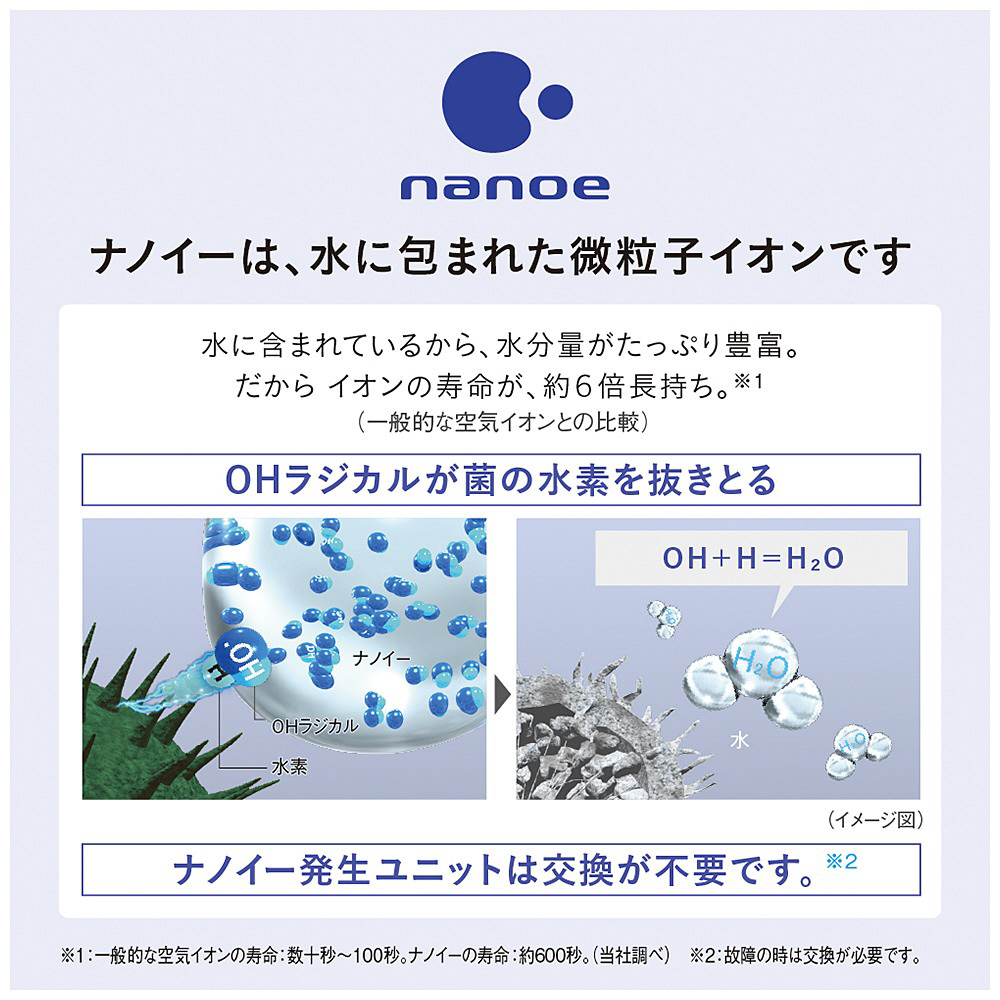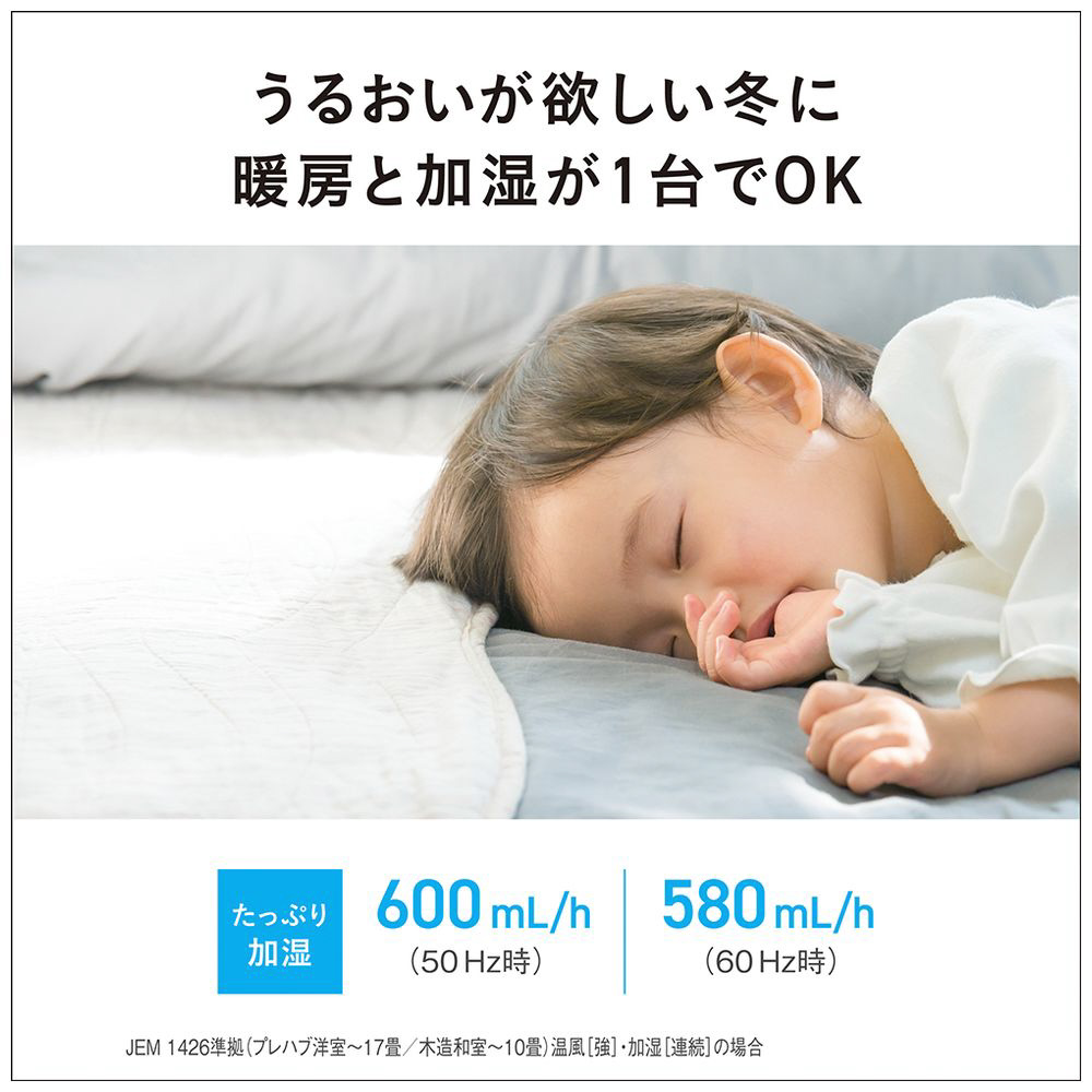 温風と一緒にたっぷりの潤いを届けるナノイー搭載、加湿タイプ。