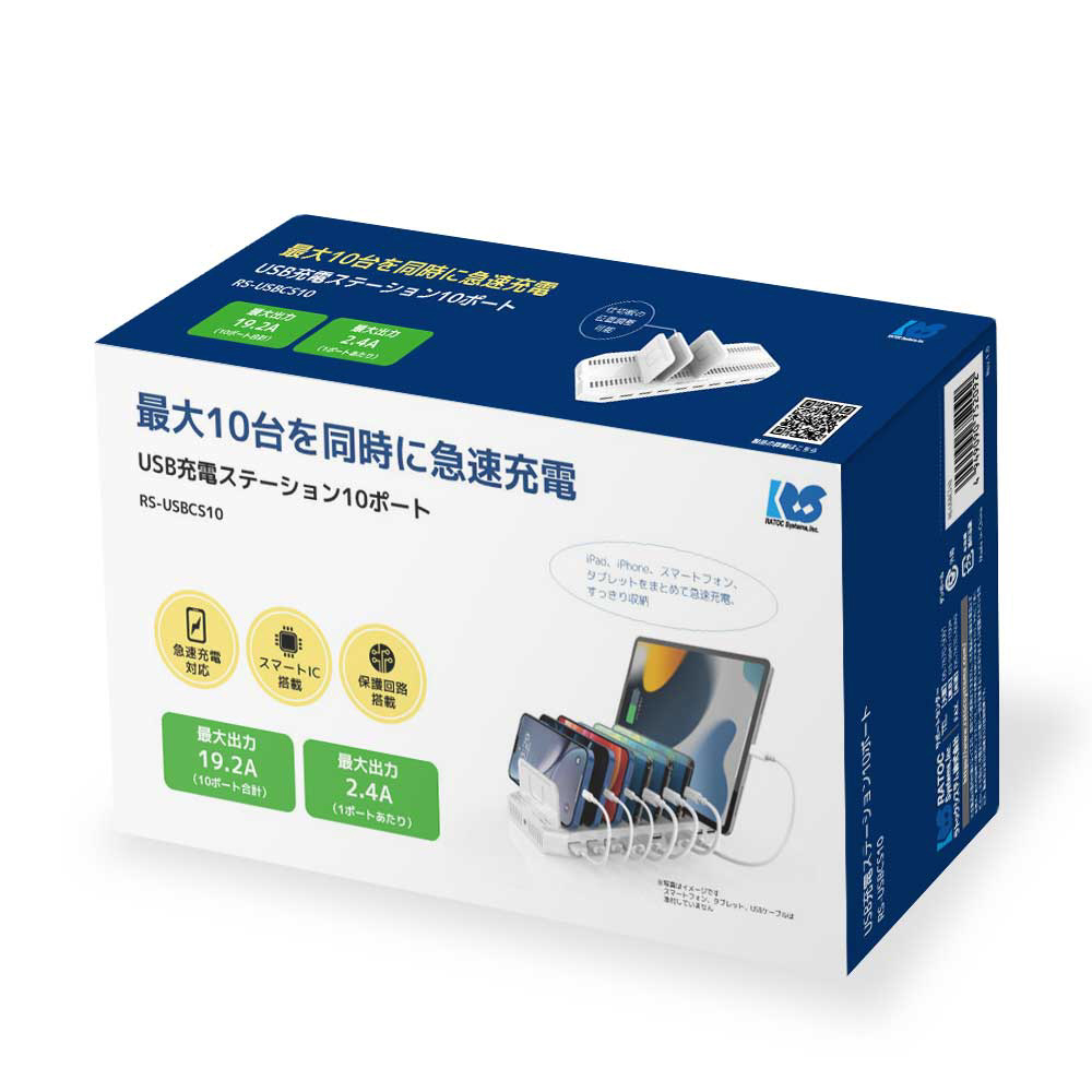 AC - USB充電器 タブレット・スマホ対応 19.2A 各2.4A [10ポート:USB-A] RS-USBCS10