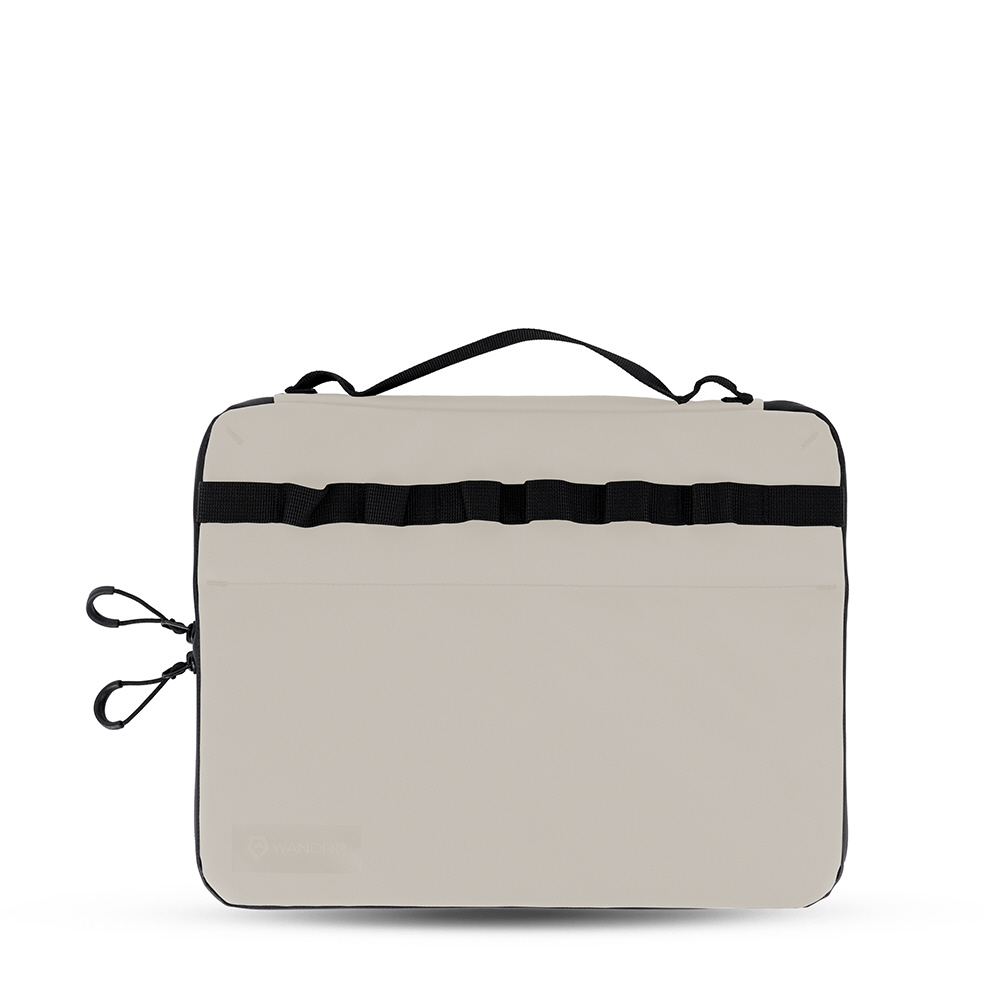 ■ロームスリング(6L、9L)背面の底部ポケットを取り出してケースを収納、ストラップで固定することで、ノートPCを持ち運べます。