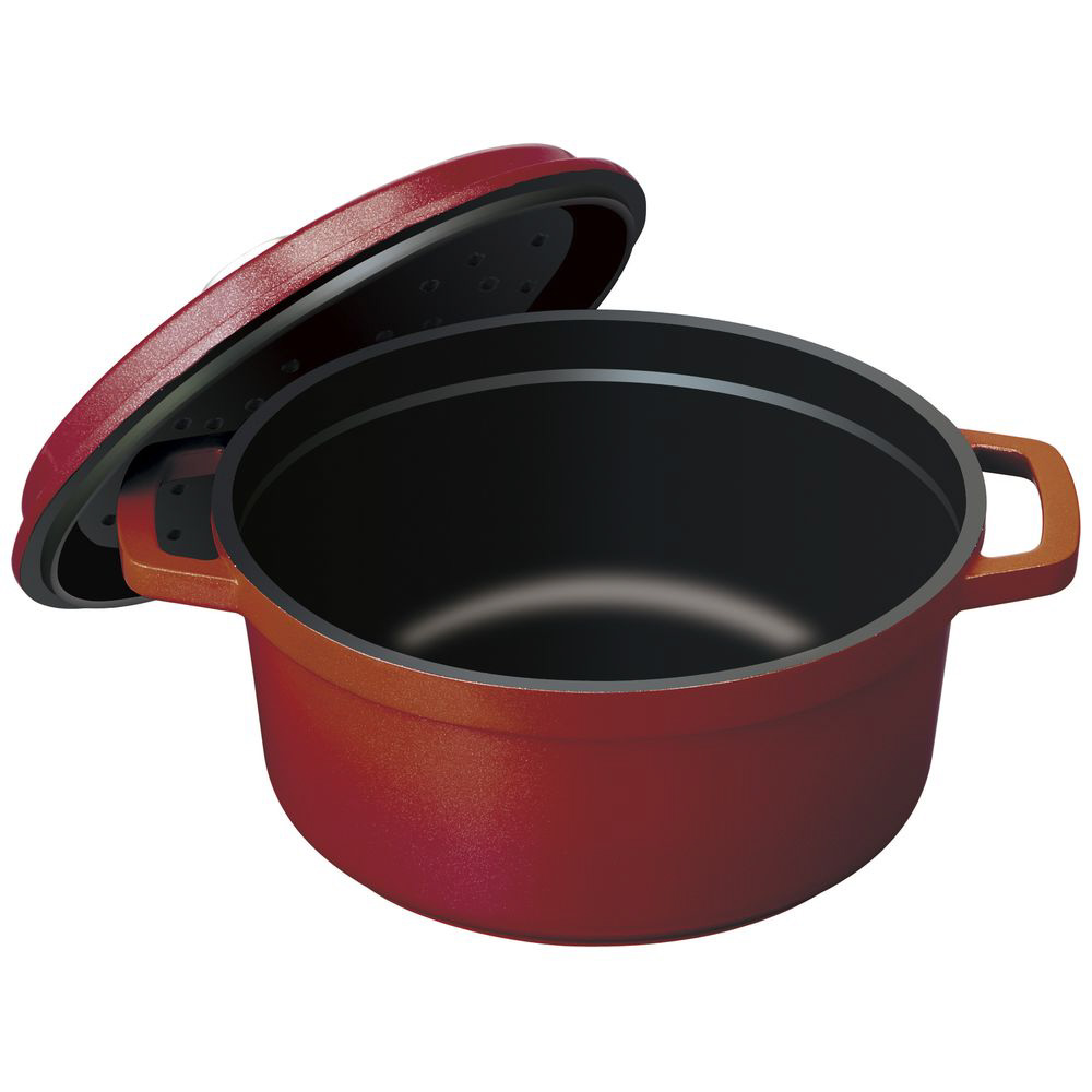 ジョイア ラウンドキャセロール 24cm ガスコンロ・IH(オール熱源対応) レッド XC-24RE [IH対応]