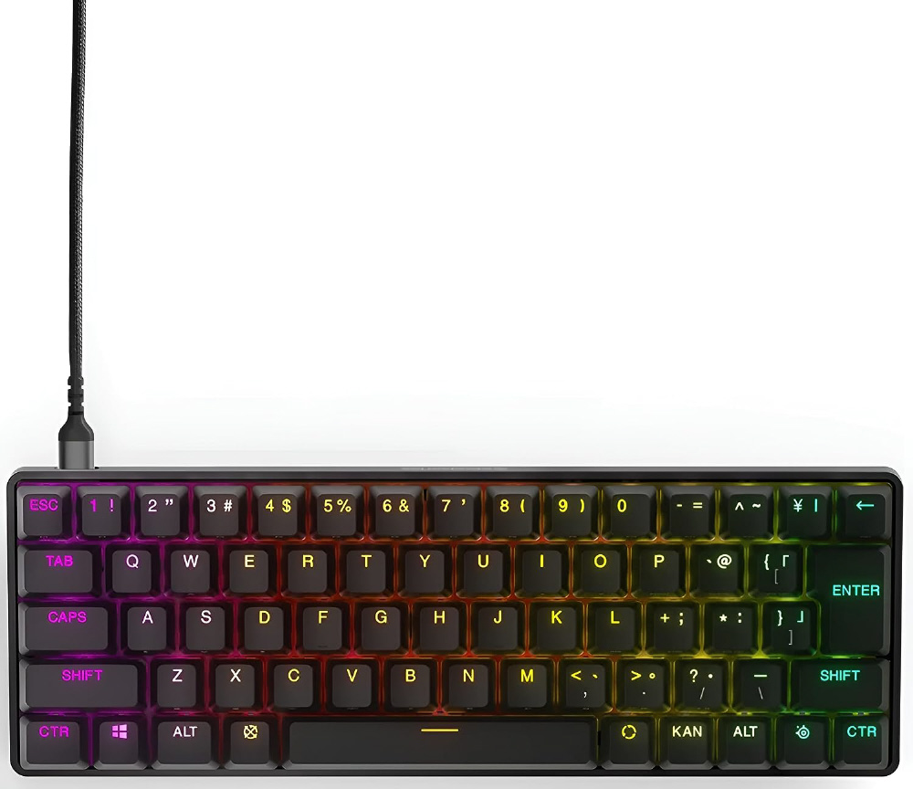Apex Pro Miniは、側面に印刷されたセカンダリファンクションでフルサイズキーボードの機能はすべてそのままに、デスク上のスペースを広げてゲームに勝つマウススワイプができるように作られました。