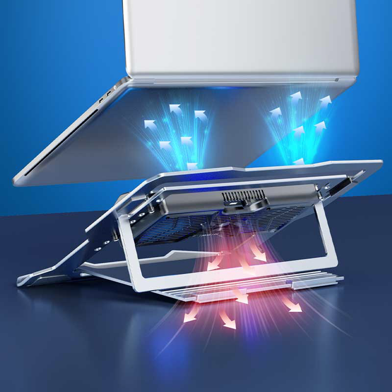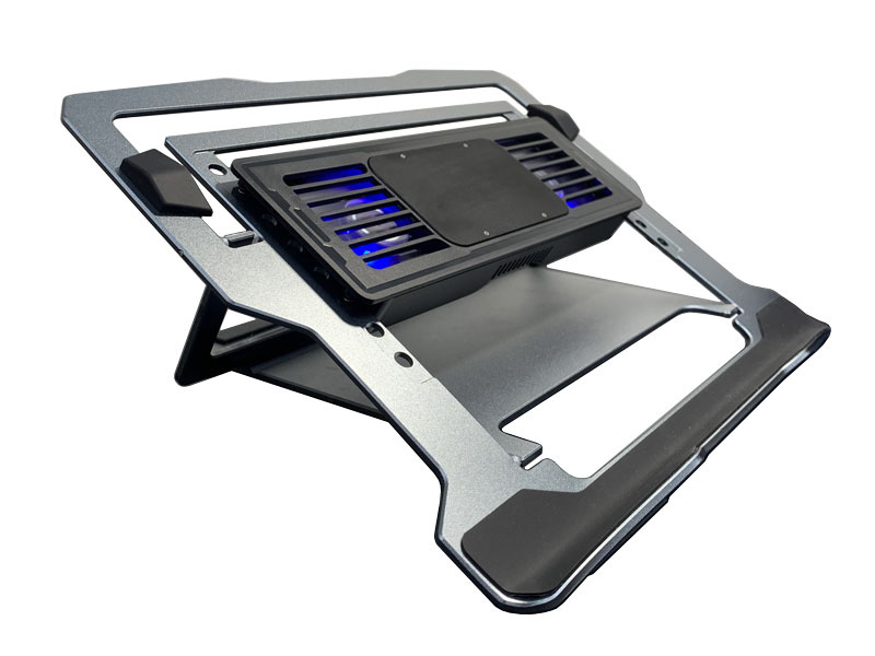 ヒートシンク+冷却ファン2個搭載により、他に類を見ない冷却性能を発揮します。ファンの位置が4段階に変更できますので、お使いになるノートパソコン裏面のメッシュ穴の位置に合わせることができ確実にノートパソコンに冷たい風を送ることができます。また、角度を4段階で調整できるようになっており、自分のタイピング姿勢にあわせて好みに合った高さと角度を選べます。タブレットスタンドも付属しています。