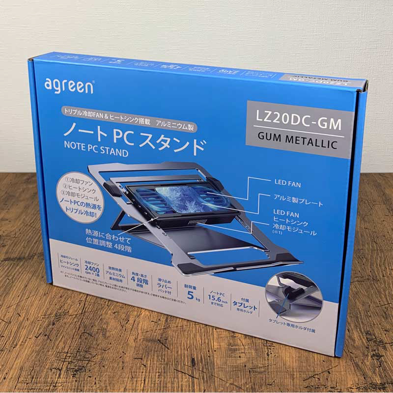 ノートパソコンクーラースタンド [〜15.6インチ /USB-A接続] ヒートシンク+冷却ファン2個搭載 agreen LZ20DC-GM 【sof001】