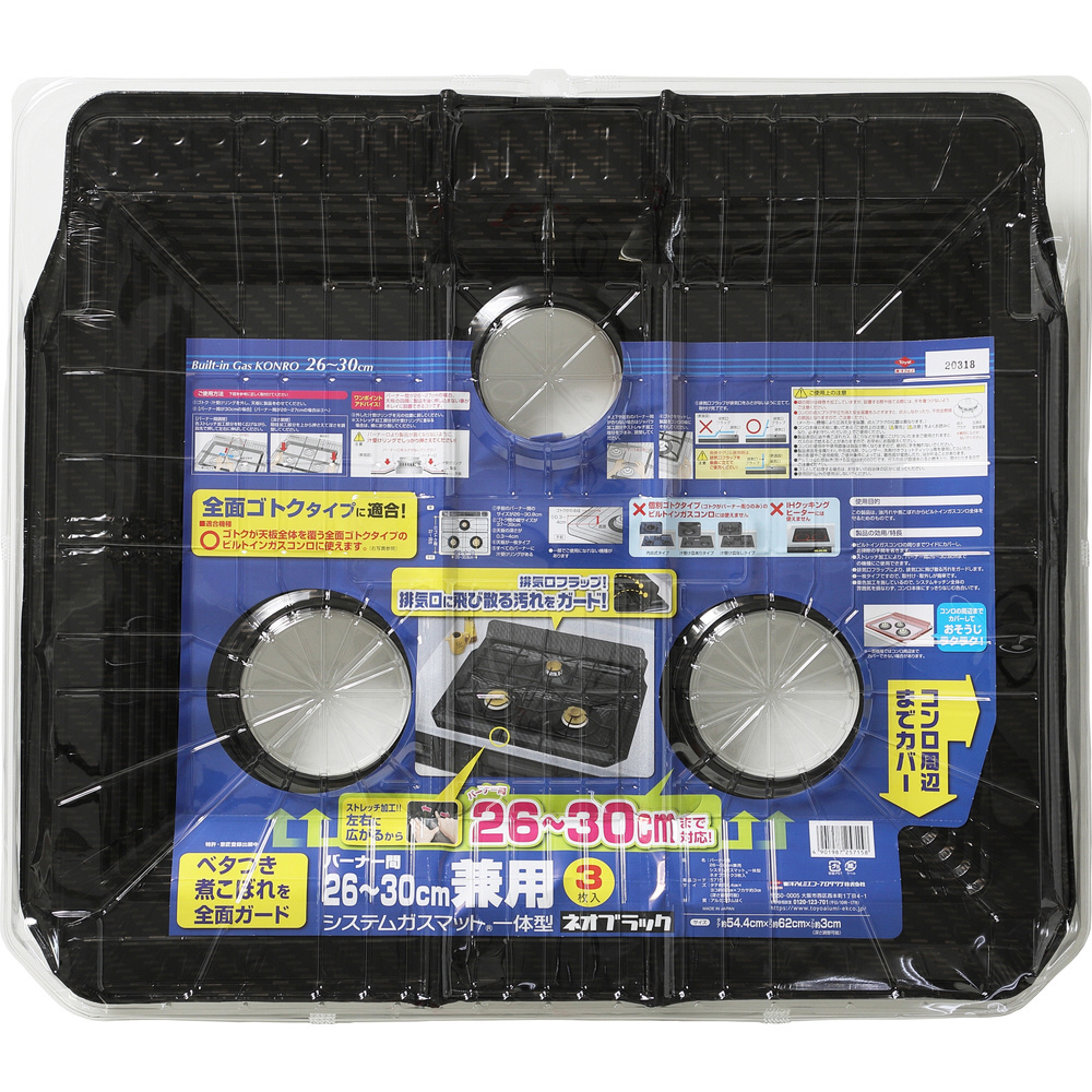 バーナー間26〜30cm 兼用システムガスマット一体型ブラック 3枚