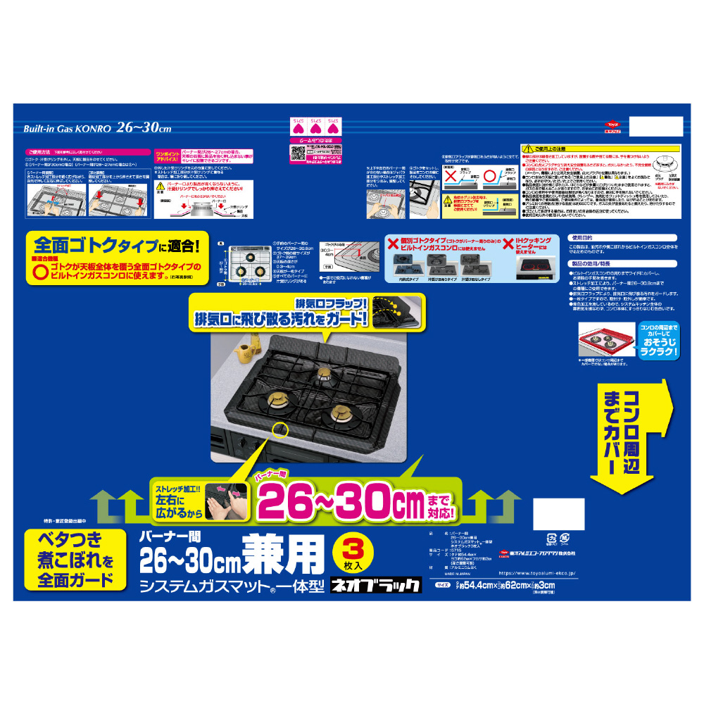 | 商品名 | バーナー間26〜30cm 兼用システムガスマット一体型ブラック 3枚 |
