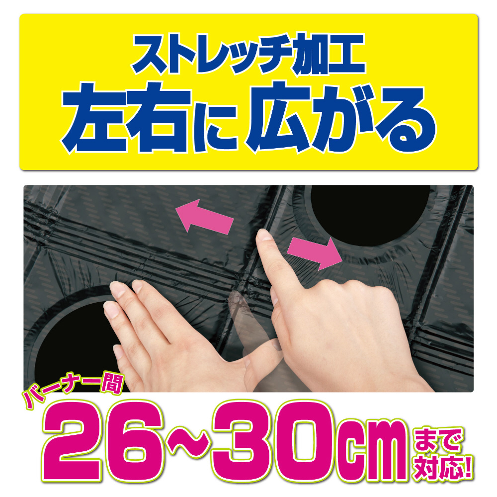 ◆左右にのびるストレッチ加工によりバーナー間26~30cmまで対応