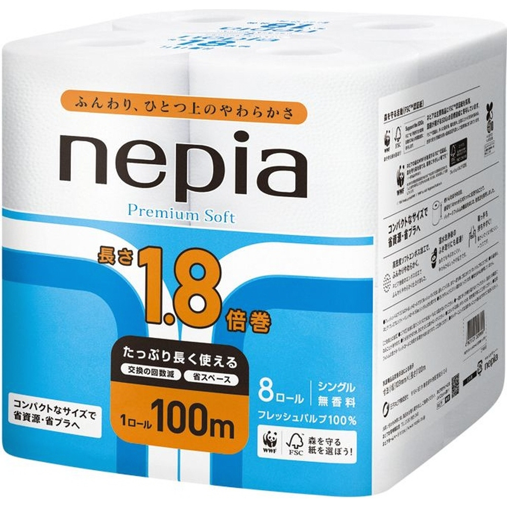 nepia(ネピア)プレミアムソフト トイレットロール 1.8倍巻 8ロール シングル100m