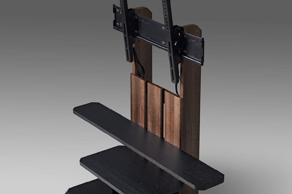 サウンドバーやDVDなど、複数の機器が設置可能。棚板は木製だから音との相性も抜群です。サウンドバー棚板は取り外しての使用も可能です。サウンドバー棚板は64mm間隔で高さ調節可能(3段階)