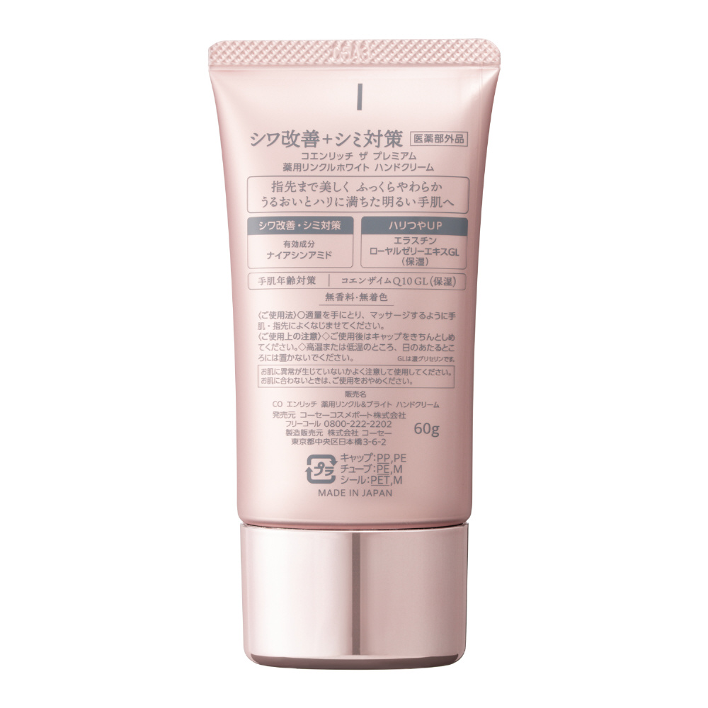 | 商品名 | コエンリッチ ザ プレミアム 薬用リンクルホワイト ハンドクリーム 60g[医薬部外品] |