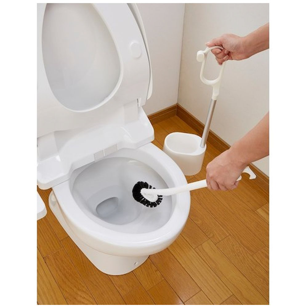 ■ブラシは長さ約41cmと長めでブラシヘッドは便器フチ裏を洗いやすい形状です。